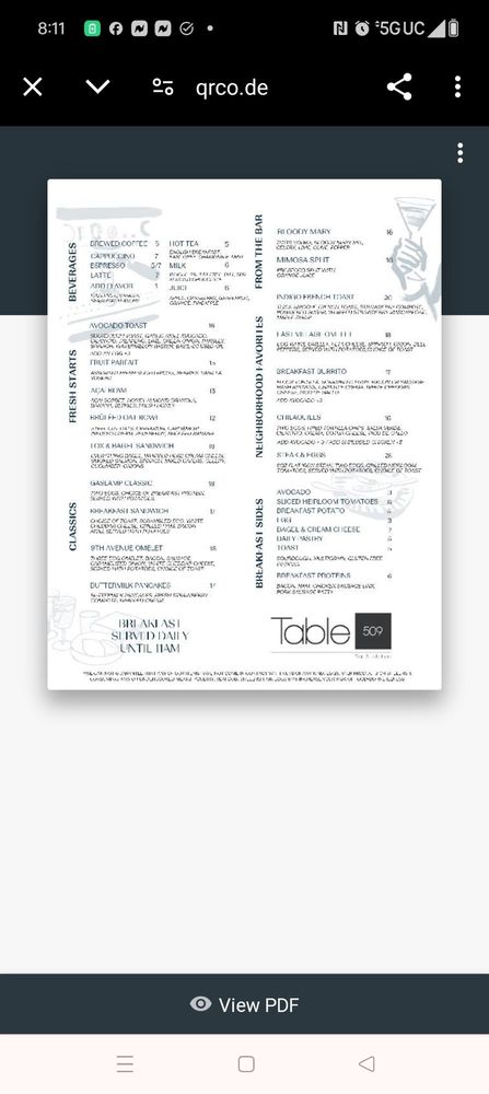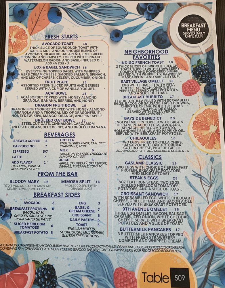 The atmosphere is warm and welcoming, with friendly staff like Elaine and Victor making every visit memorable. Local favorites like the heuvos rancheros and standout French toast highlight the quality and creativity that shines throughout the menu. Whether for a hearty breakfast or a refreshing drink like the Mimosa, Table 509 is a local gem you can't miss.
